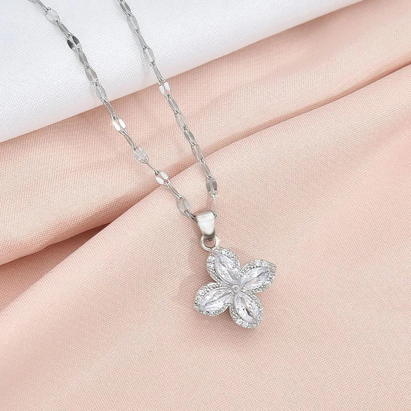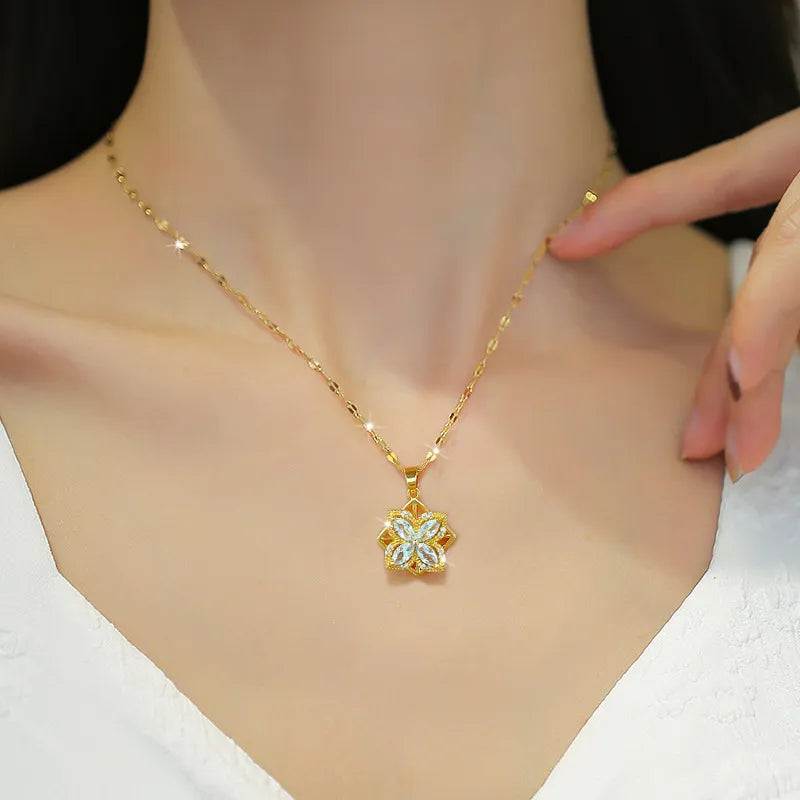 14 Ayar Altın Kaplama Yeni Dönen Zirkon Taşlı Yonca Kolye